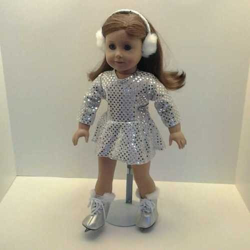 ʊ Price Silver Sequin Skating Outfit Complete with Skates and Signature Bear for American Girl Dolls